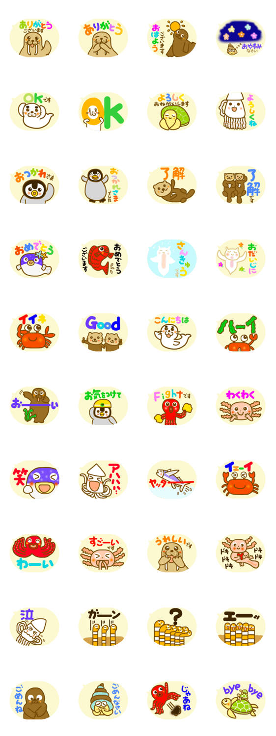 いろいろな生き物のスタンプです。毎日の会話にお使い下さい。