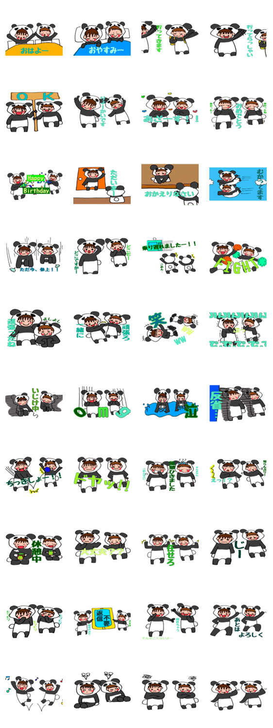着ぐるみを着た仲良し兄弟のスタンプ。今回はパンダの着ぐるみです。