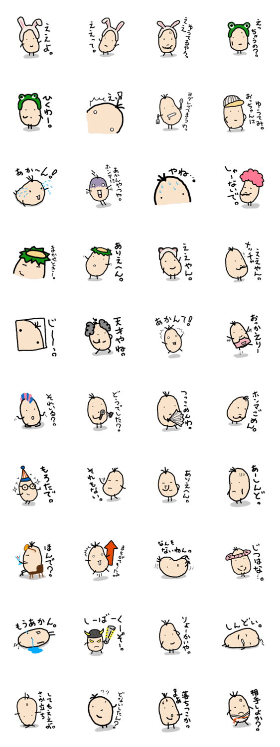 | スタンプ説明 | ただの大豆やないで~!チラ見だけでもみたってや~。なにわ、たこ焼き、粉もん、吉本大好き大阪人専用です。知らんけどな。 |