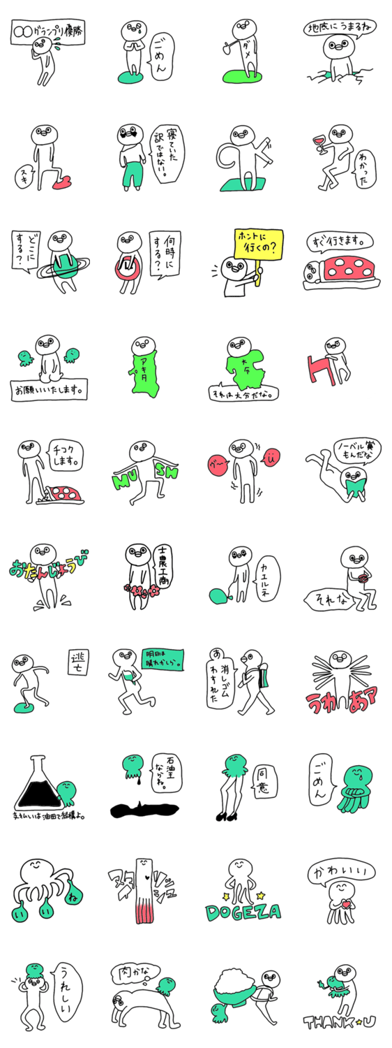 ネムラ(ペンギン)と眉毛(クラゲ)の愉快な日常用スタンプです