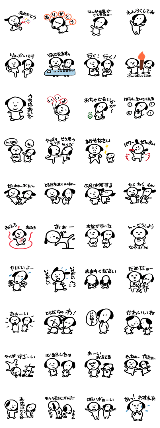 いつも一人ぼっちのチップに、タローと言う友達が出来て楽しい日常をスタンプにしました。