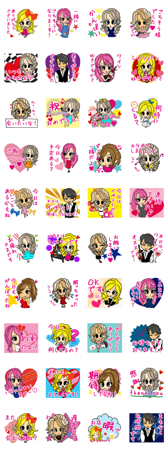 キャバで働くカワイイ女の子のスタンプです。ぜひ使ってみてクダサイ!!