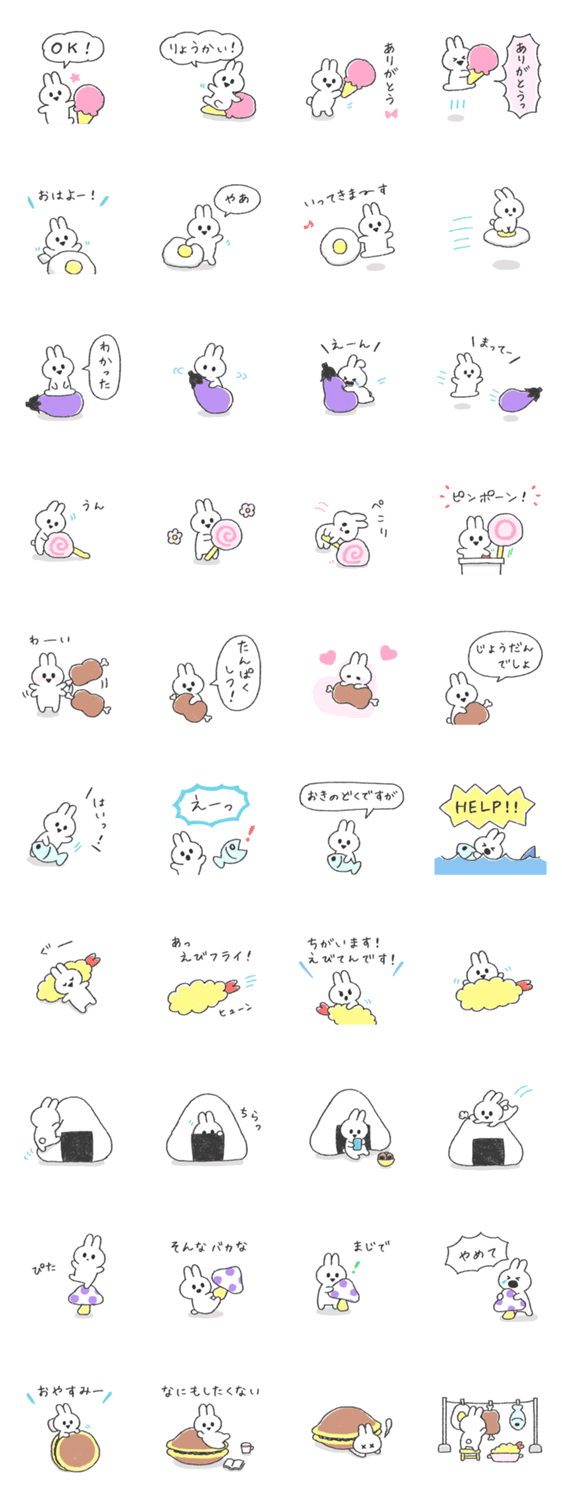 食べ物クッションを愛するうさちゃんのスタンプです。