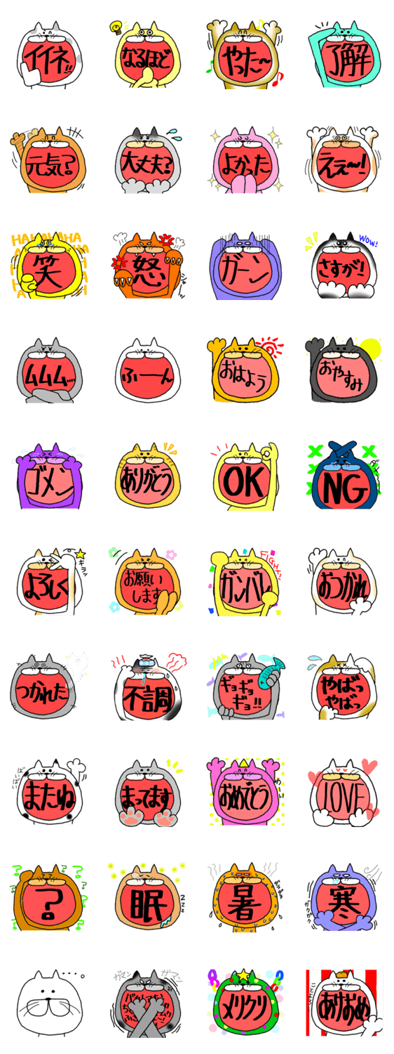 日常、各季節で使えるスタンプ☆いろいろな表情、カラーのネコ君をトークにお役立てください!