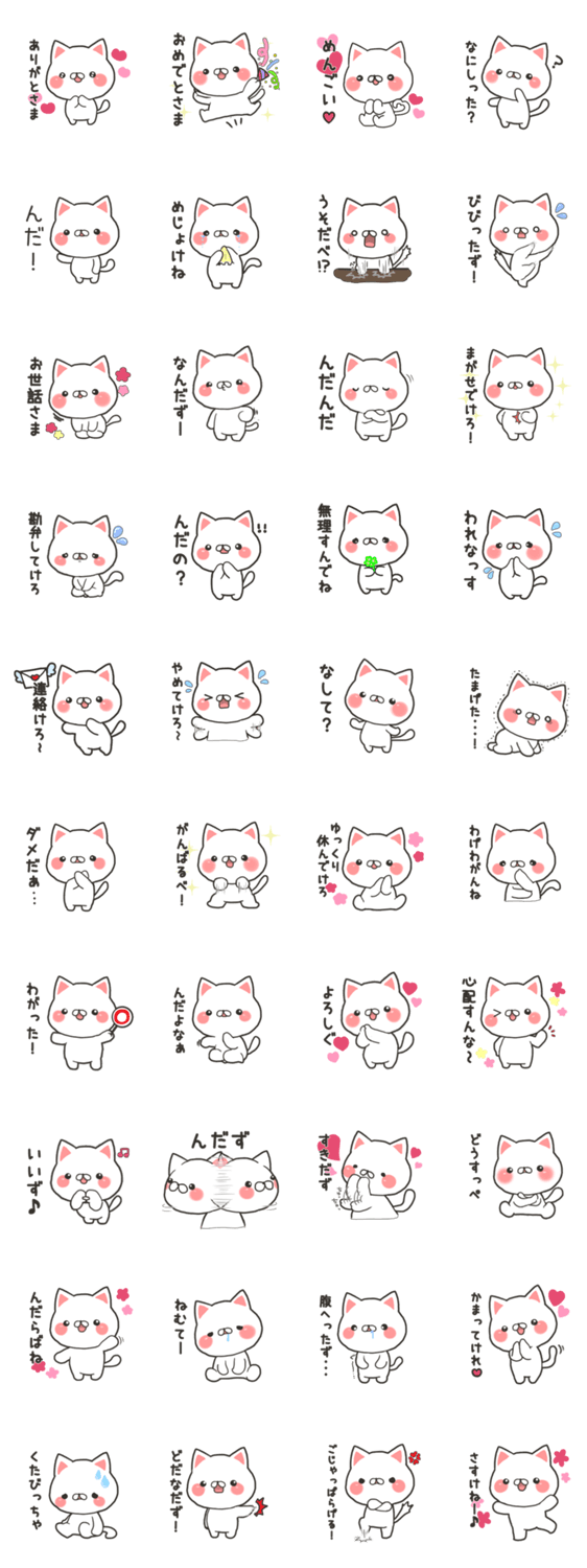 山形弁でお話しする可愛いねこさんのスタンプ♪青森、岩手、秋田、宮城、福島など東北弁の方にもお使いいただけます★