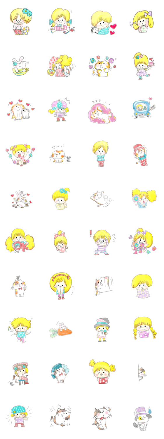 スタンプ説明 女の子と猫うさぎ犬の日常スタンプです。