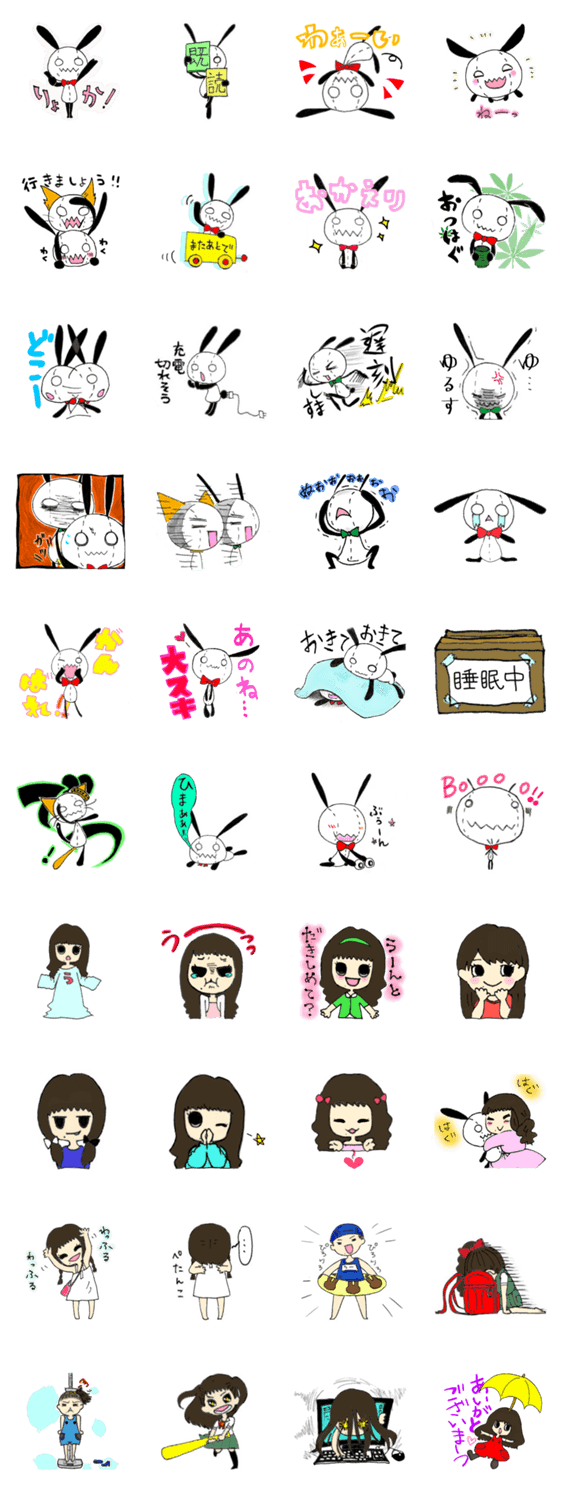 | スタンプ説明 | 雨宮悠香の描き下ろしスタンプ!うさぎのぬいぐるみアイちゃんとオーちゃんにぬいぐるみ大好きなうーちゃんの可愛くもシュールな癒し系スタンプ! |