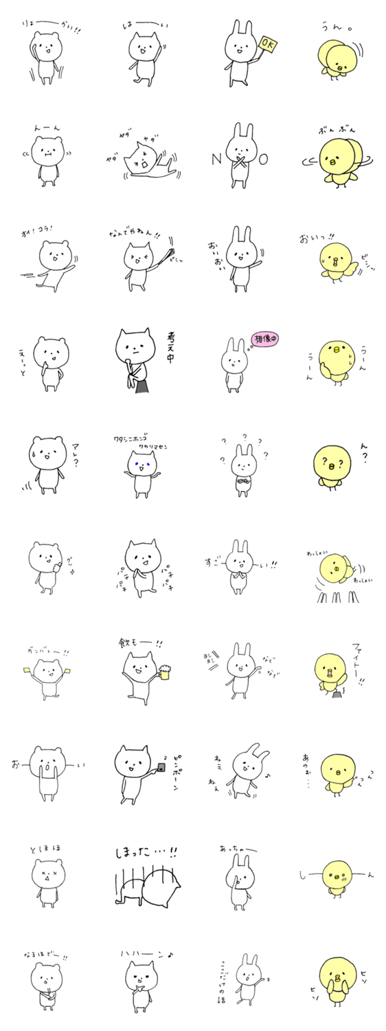 ゆるい4匹の動物たち。会話用に使いやすくしました。同じような意味の言葉を4匹で表現してます!
