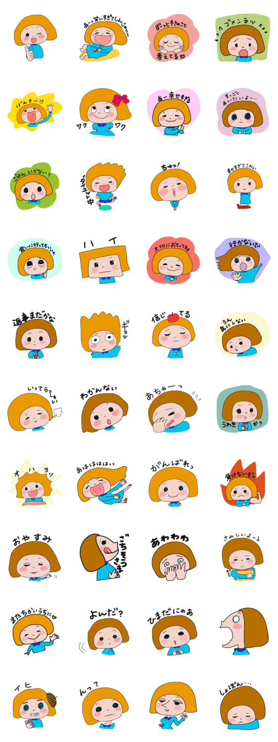 | スタンプ説明 | 雨の日も晴れの日も、おかっぱ頭がトレンドマーク。おかっぱちゃんがきょうも行く!シリーズ4作目は恋する乙女なおかっぱちゃん。恋愛中の女の子の切ない思いを届けるぜ! |