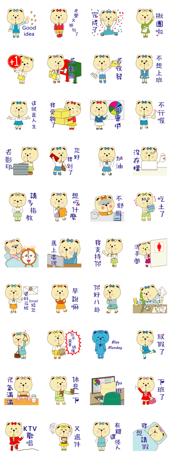 | スタンプ説明 | Pace bear is a cute bear. She has many friends in the dummy family. |