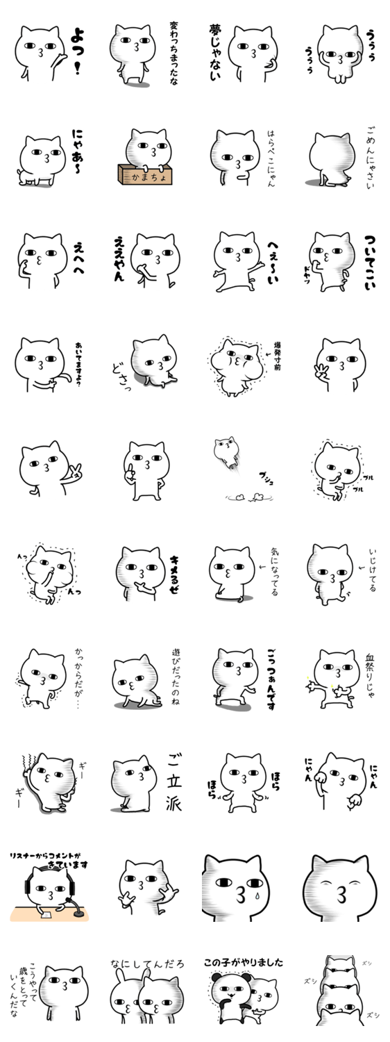適当なほどにゆるくて、うざくて、目も死んでるネコのスタンプです。ゆるすぎるウサギとパンダも、ちょっとだけ。
