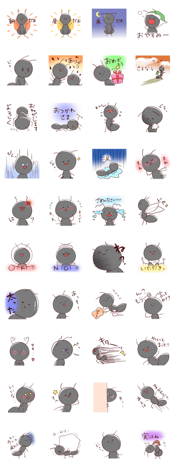 日常会話で使える、可愛い ありんこ のスタンプです。