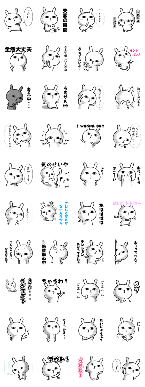 適当なほどにゆるくて、うざくて、目も死んでるウサギのスタンプです。第2弾。