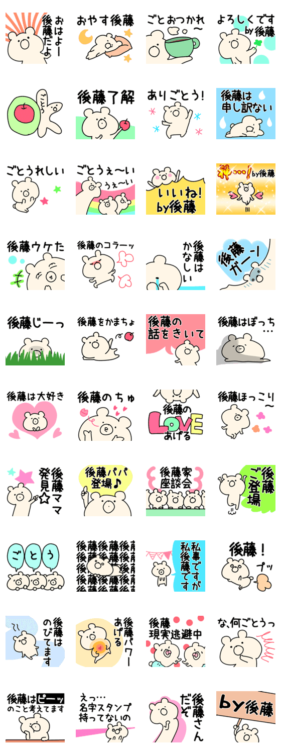 後藤さんが使う用クマの名前スタンプです。名字がごとうさんの人はこのくまスタンプをどうぞ。