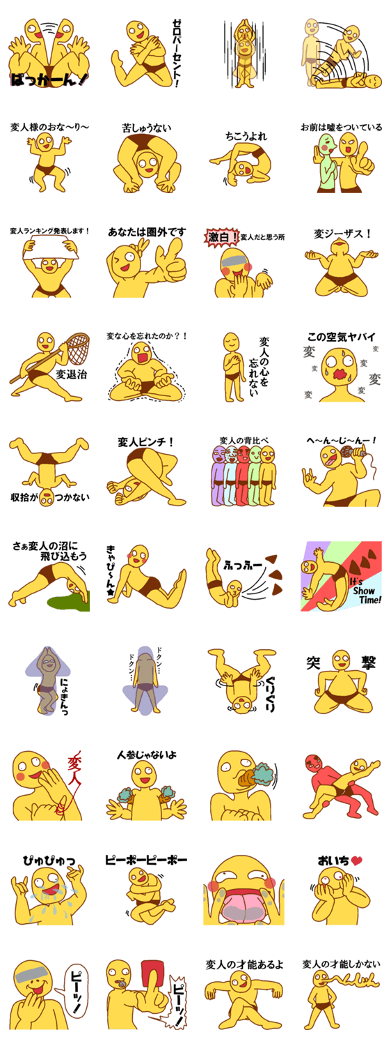 変人シリーズ第5弾。変人に困ってる人、変人を主張したい人に最適なスタンプです。ゲスネタを使いたい人もどうぞ。変態に対抗もできます。