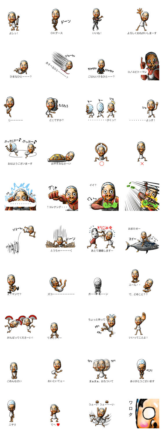 | スタンプ説明 | ふきだしに小さなひょっとこの親子と、たまにおたふくが現れます。日常使いやすい言葉をフキダシに載せました。 |