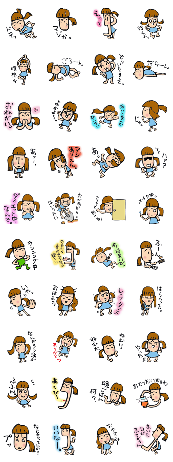 スタンプ説明 女の子の日常生活で使うスタンプ
