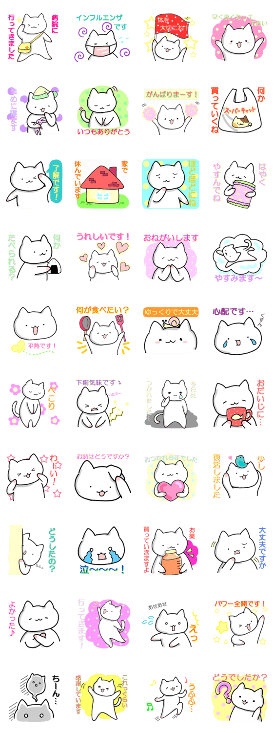 白ネコのあいうえお・・・ってるスタンプ