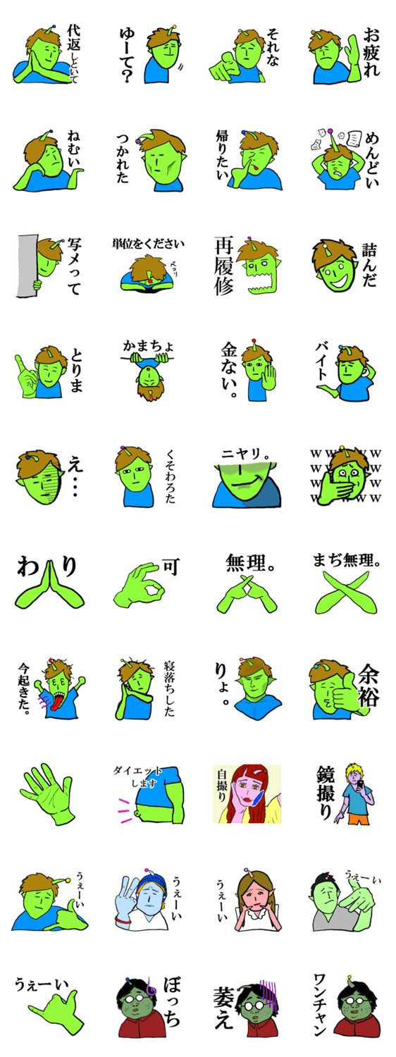 とある惑星に住む大学星人と呼ばれる生命体のスタンプです。