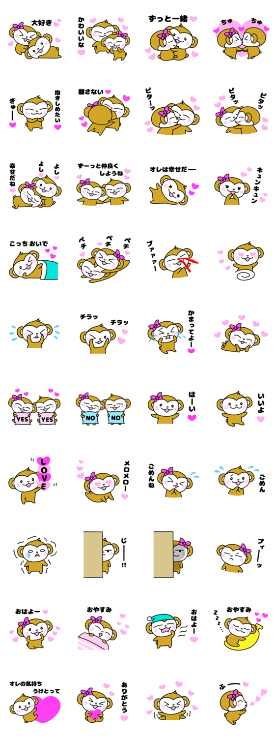 好きで♡好きで♡たまらない、使うと何だかほっこりな気分になるスタンプです。二人で仲良く使ってね。