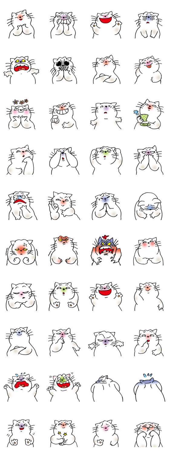 白ネコのあいうえお・・・ってるスタンプ