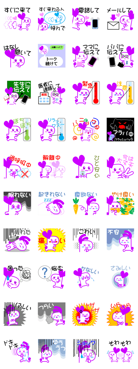 | スタンプ説明 | トラウマティックな状況に直面した際にSOSを発信するスタンプです。冷静に話すことや文章で伝えることが難しい状態でもイラストがあることで簡単に状況を伝えられます。 |