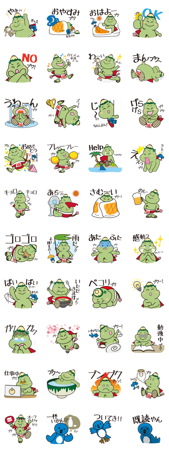 | スタンプ説明 | 福智山に住み人びとにラッキーをもたらすシャイな神様「福天」がLINEスタンプに登場。相棒で筑豊弁を話すオオルリさんもペアになった楽しいスタンプです。 |