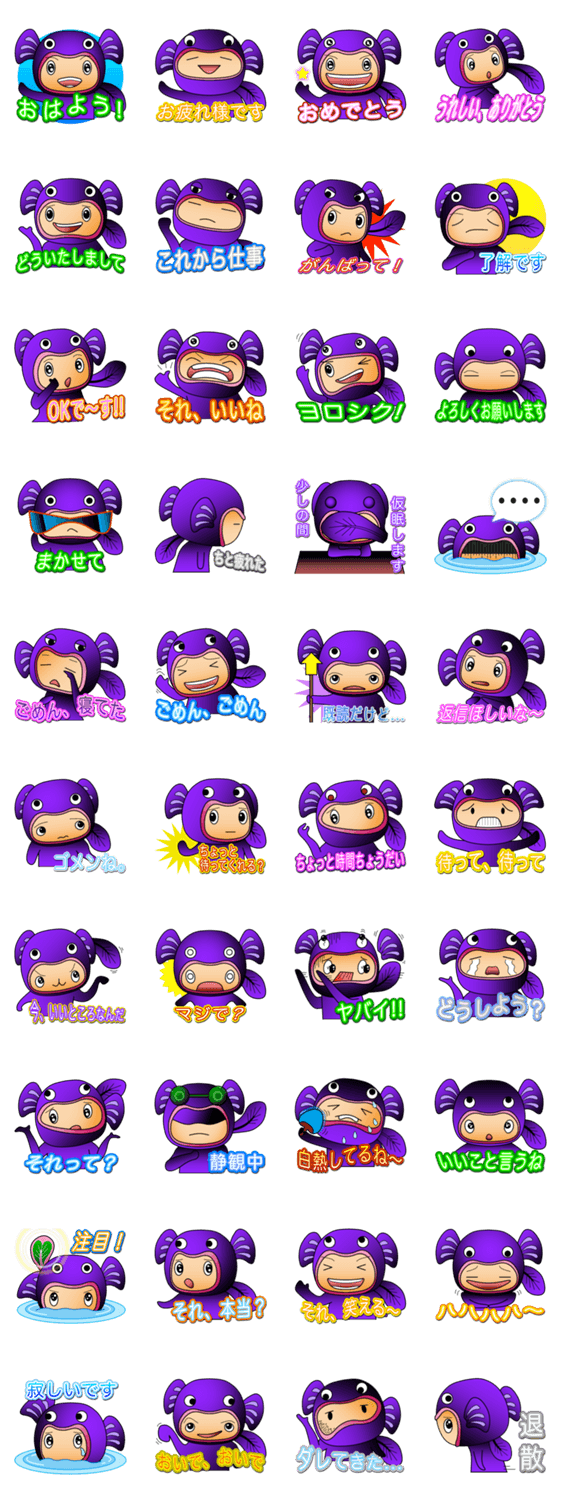 ウナギを被ったウナヤンたちのスタンプです。ウナヤンたちの表情と、ウナギくんの表情に注目です!