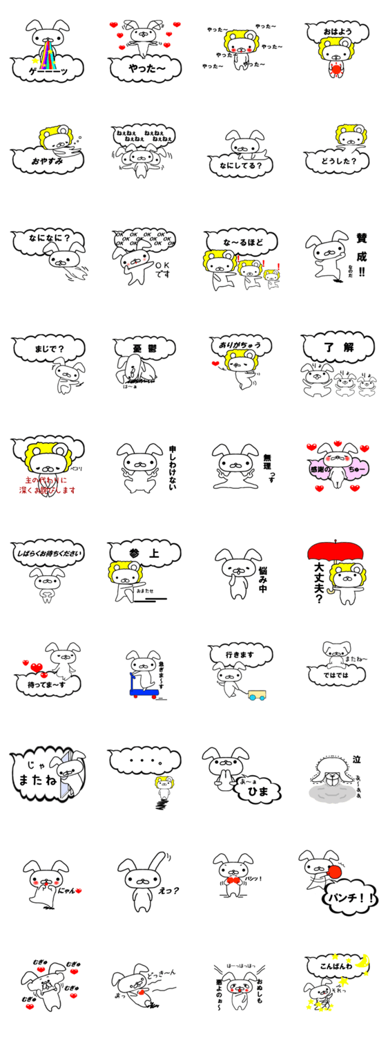 うさぎとライオンがかわいくメッセージを伝えるよ!使いやすい定番スタンプにしました。