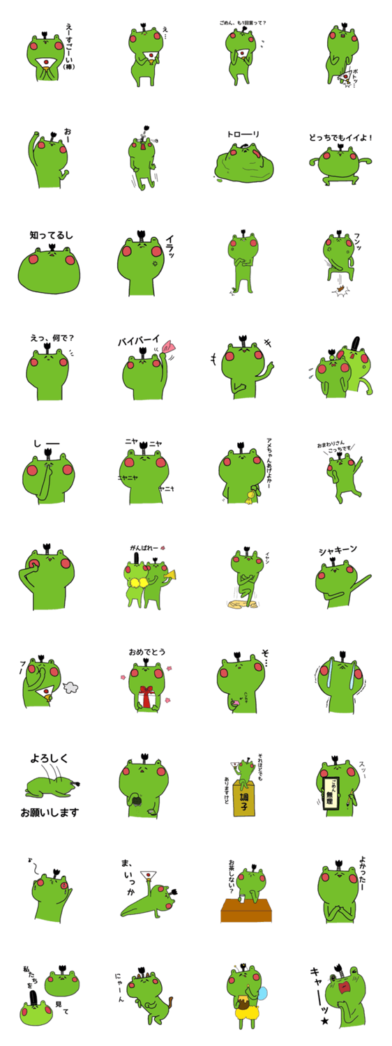 カエルのお殿様。トノサマガエルの殿の日常系スタンプ。たまーにマロも。その2