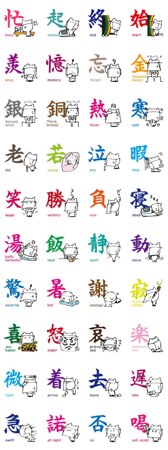 黒子ネコをキャラクターに一字に感情を表現してみました。イチジクではありません。カンチョウではありません。案はまだ出ます。