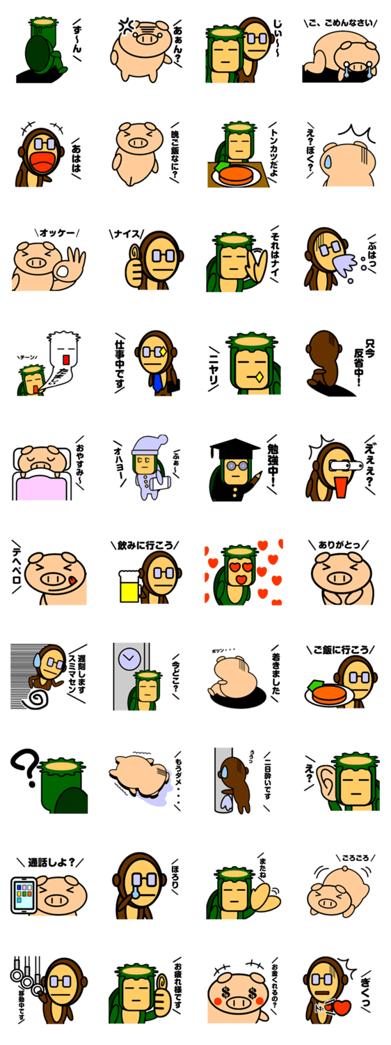 西遊記に影響された「うっかり三人組」!日常のやり取りに使えるスタンプを中心に、ちょっと笑えるイラストのスタンプをそろえています。