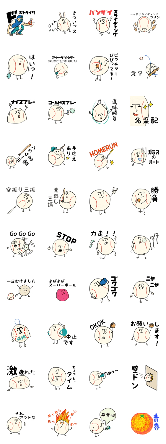 少年野球から高校野球、それらの保護者、そして草野球まで野球に関わる全ての人に使って欲しいと考えたスタンプです。第二段は黒い線で見やすくなりました!