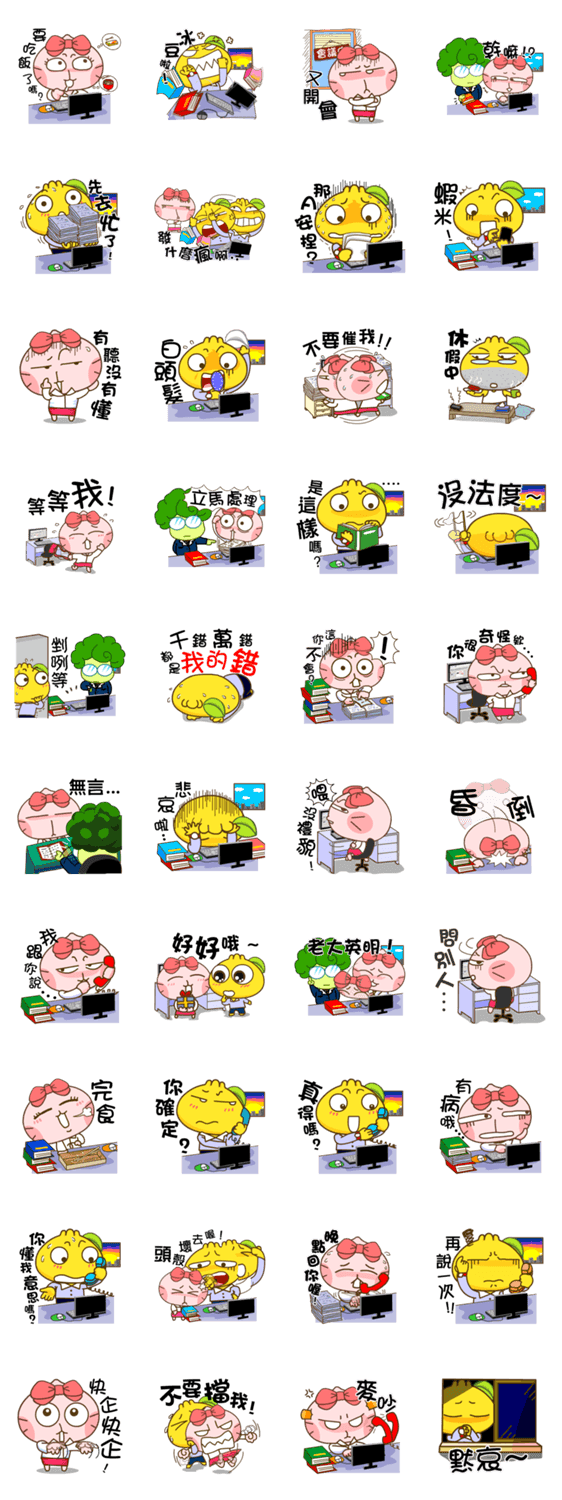"Meeting again?", "Are you sure?", "Go, Go!", "Overtime...","On Vacation","Don't rush me!" Perfect for your office life!