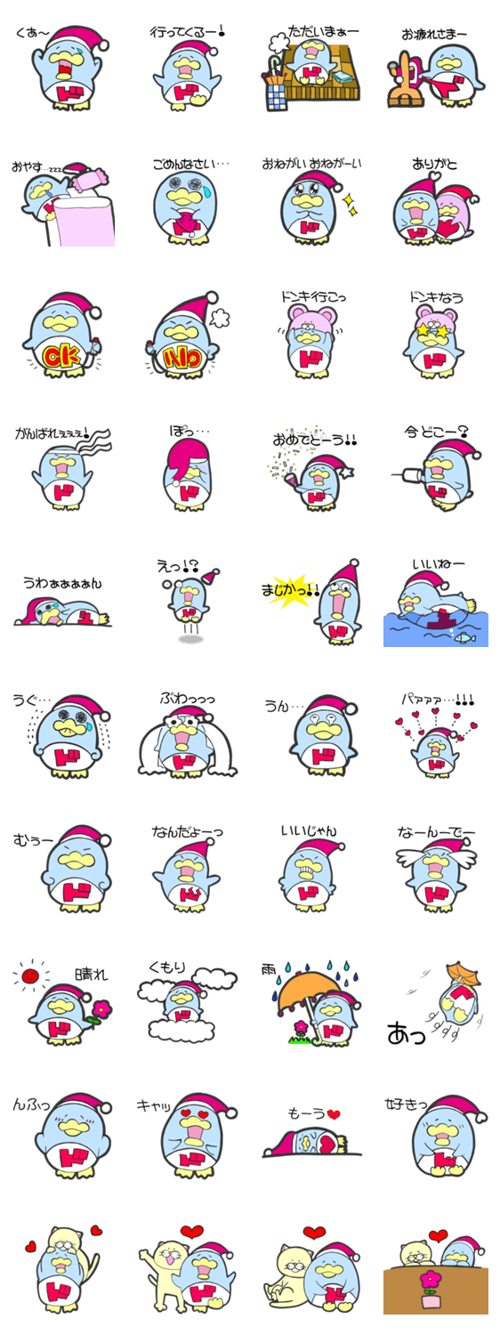 | スタンプ説明 | ドン・キホーテの店内POP でお馴染みの「ドンペン」が手描きの味わいそのままでスタンプに! |