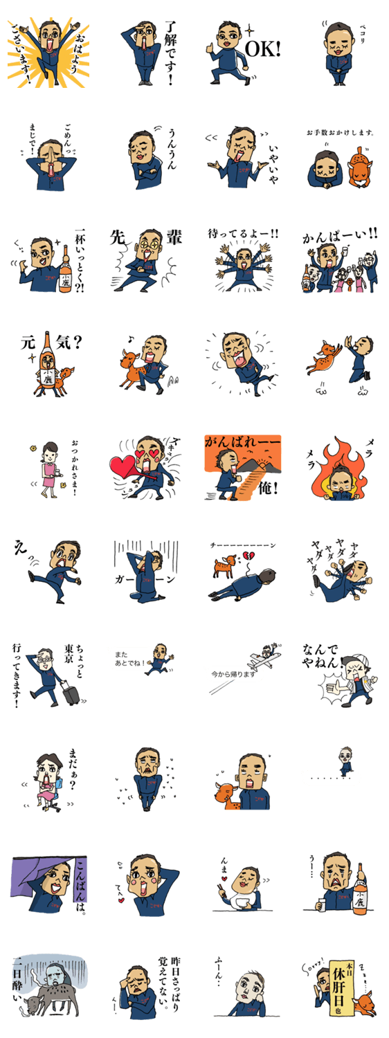 焼酎好きの人にお勧めのスタンプ!鹿児島県鹿屋市吾平町にある小鹿酒造のゆるいキャラクター小鹿呑助のシュールな日常をスタンプにしました♪使えるスタンプ盛りだくさん!