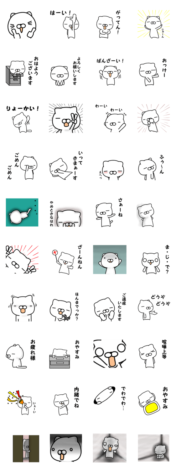 | スタンプ説明 | 若干、クマっぽいねこの普段よく使う言葉をまとめたスタンプです。みんなで使ってね。 |