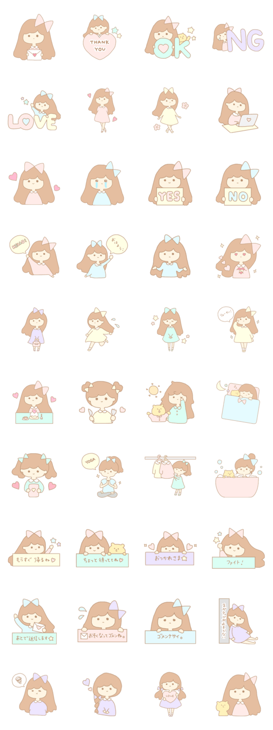 リボンを愛する女の子のふんわりかわいいスタンプです。
