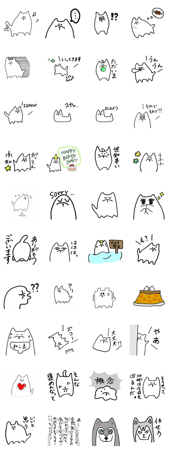 白ネコのあいうえお・・・ってるスタンプ