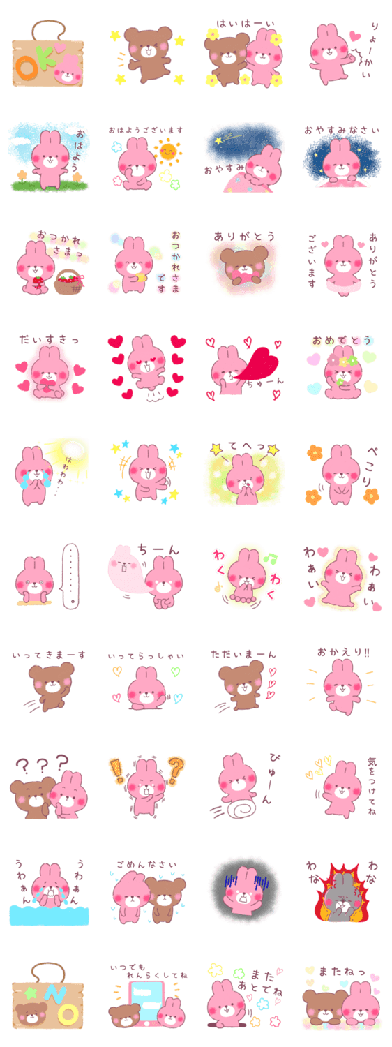 友達、家族、夫婦、カップルで毎日使えるかわいいいやしのウサギとクマの日常会話♡敬語や恋愛言葉もあるので便利!ぽぽんのスタンプ第51段♡