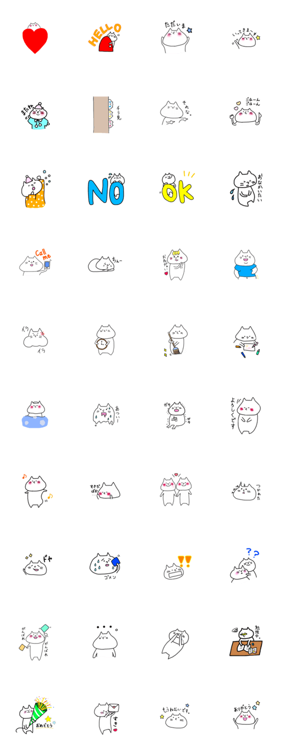 よく使えるスタンプ。ほっぺたがタプっとしているかわいいねこちゃん。ゆるゆると。