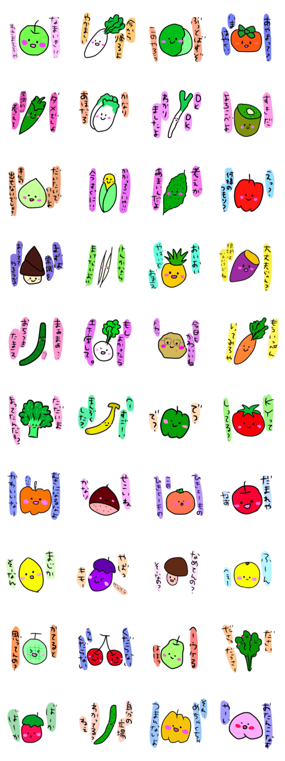 野菜と果物がちょっと煽りを入れてくるほんわかスタンプです。