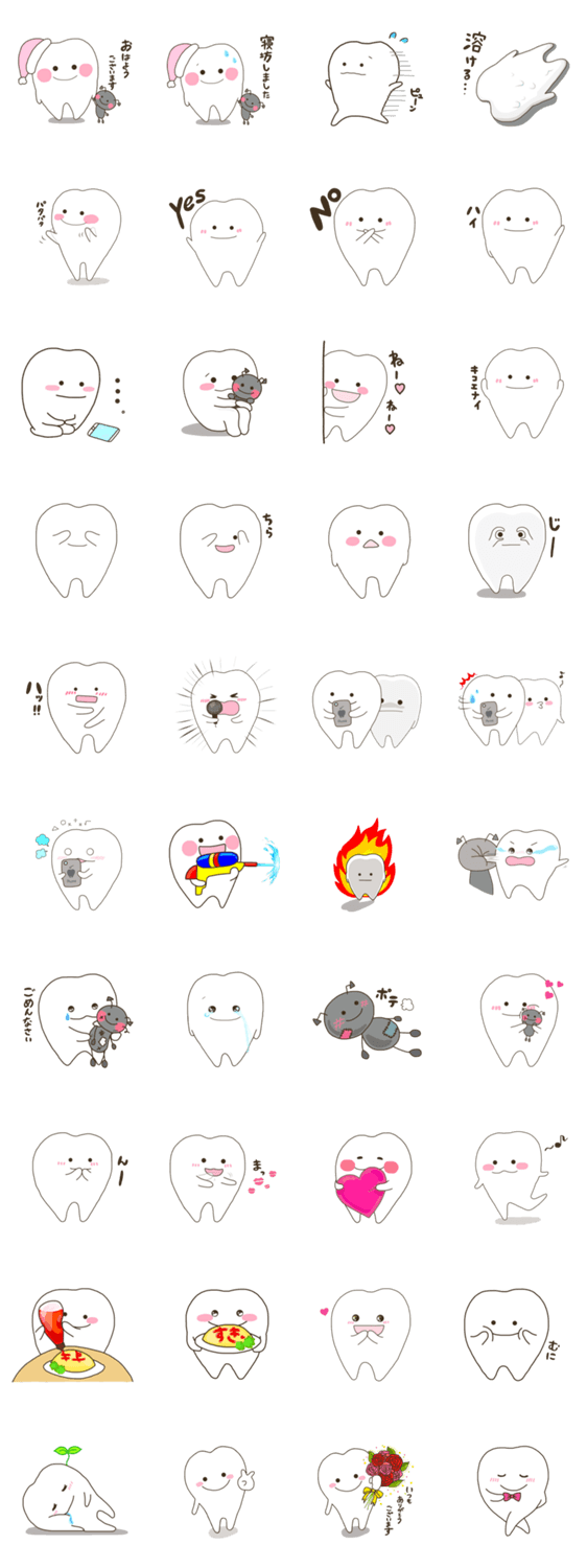 | スタンプ説明 | 皆といつも一緒の歯。第三弾。歯科関係者もそうでない方も使いこなして欲しいです。 |