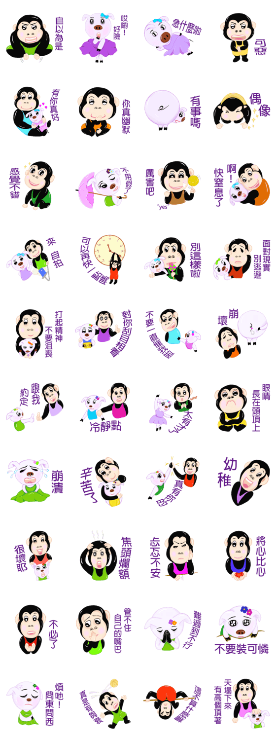 Ape brother and sister pig