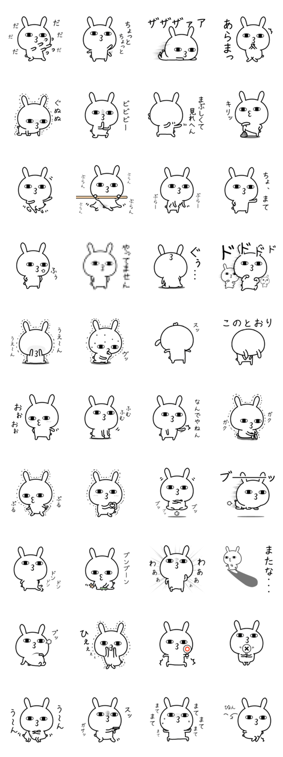適当なほどにゆるくて、うざくて、目も死んでるウサギのスタンプです。第4弾。.