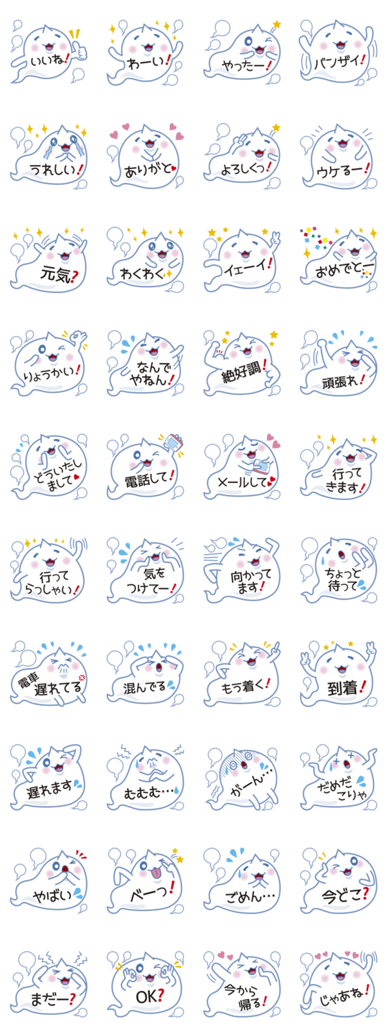 可愛いオバケの形をした吹き出しスタンプです。日常でよく使う言葉が入っているから、LINEがもっと簡単で楽しくなります。
