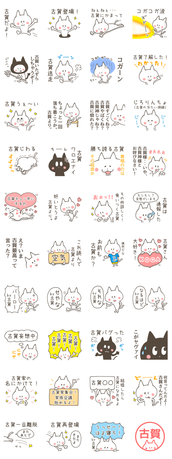 誰も待ってませんが、お待たせしました!福岡、佐賀では超メジャーな名字「古賀」さんスタンプ第2弾!今回ほぼネタです。古賀さん同士でも使えます!1個だけ博多弁あり。
