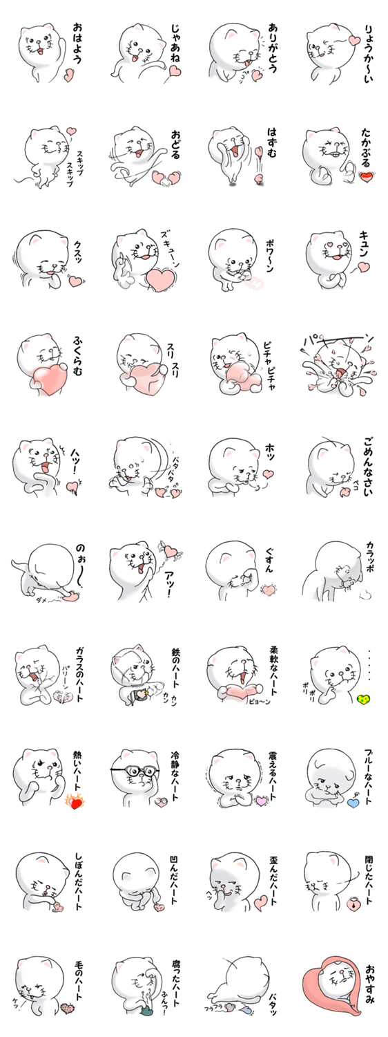 基本の日常的な心境や気持ち、心をハートと共にお届けするスタンプ。