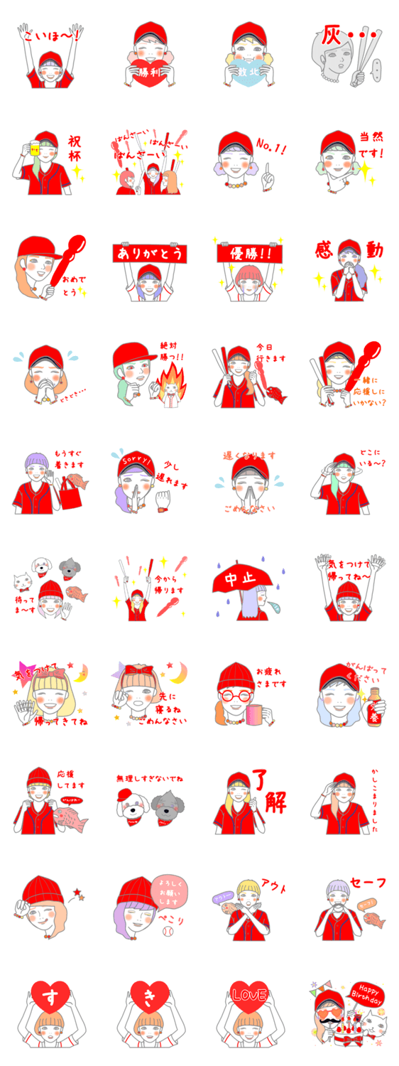 可愛い女の子シリーズの第3弾です。今回は野球が好きな女の子のスタンプです。野球関係だけでなく日常でも使えます。