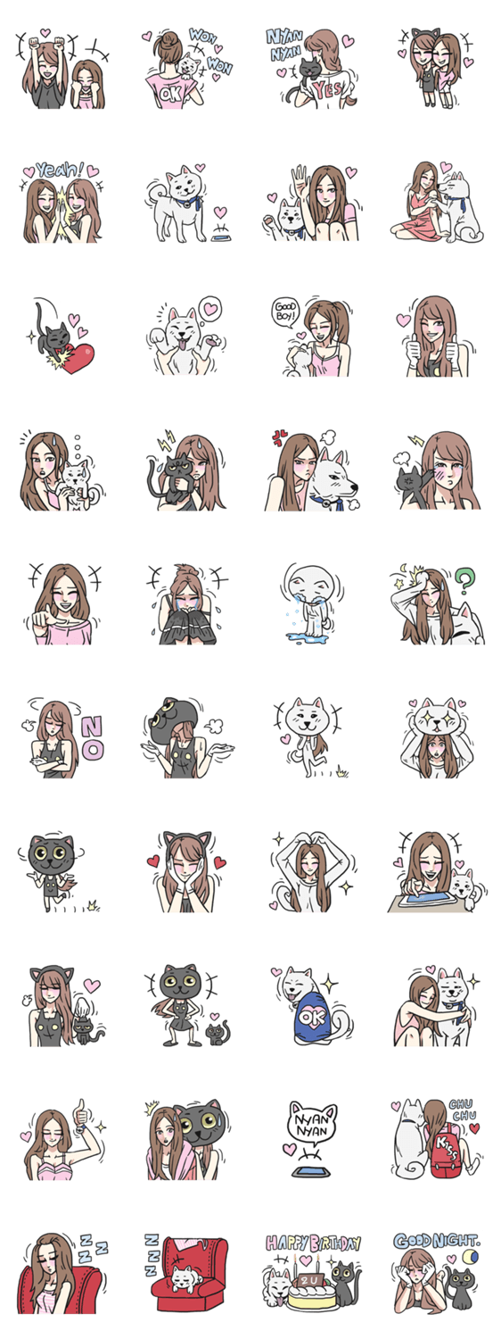 | スタンプ説明 | Nyan Nyan & Won Won is A sisters who's grow up in the Pat Cafe with they black cat and white dog! and sometime they have to wearing a funny costume! |